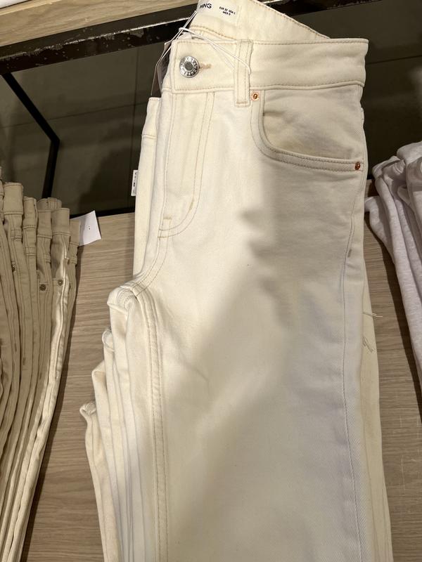 Джинси нові мом від Mango з високою посадкою та кишенями,99% бавовна ,1% еластанВ наявності 34 рКолір молочний ,молочно-бежевий Заміри в особистіДовжина 99 см