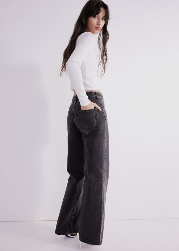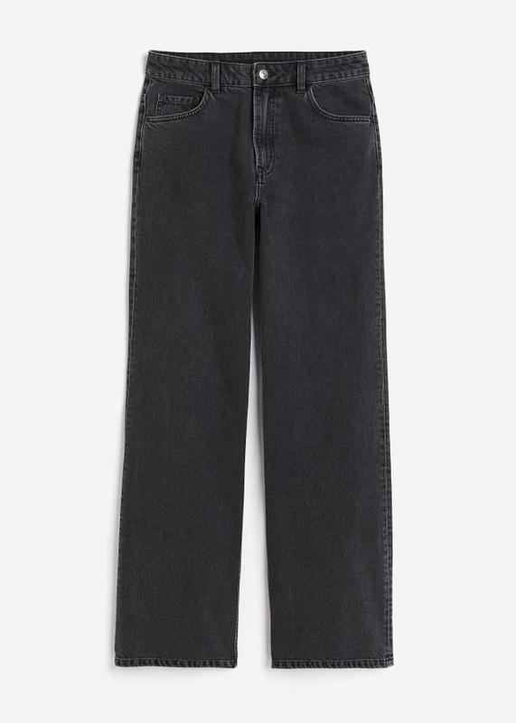 Джинси з 5 кишенями з випраного бавовняного деніму в чорному кольорі з сірим відтінком з високою талією, блискавкою та ґудзиком і широкими прямими штанинами.Вказаний розмір 38 (С-М) 40 (М-Л)Нова річ з оригінальними бірками