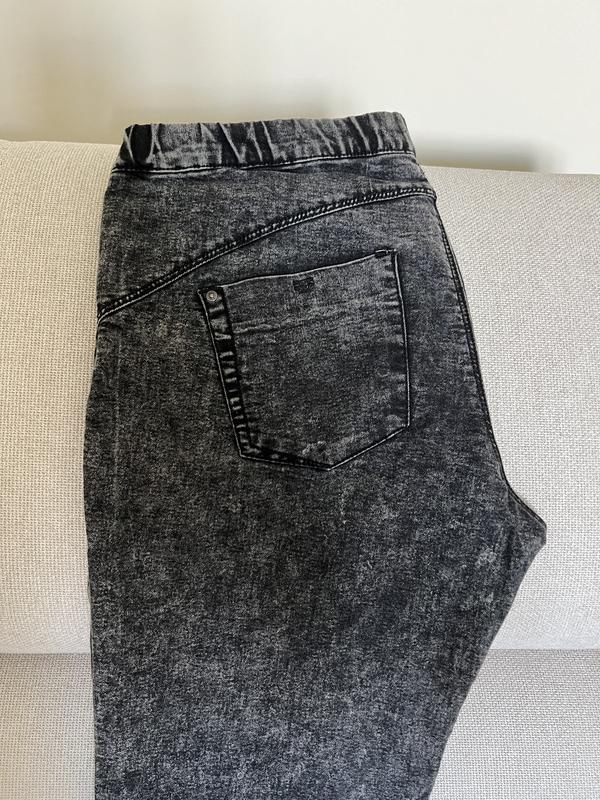 Джегінси бренду міді h&mКолір темно-темно сірийНе важка, приємна тканинаСередня посадкаЄ задні кишені, нема передніхРозмір вказано 36, я б рекомендувала 38На бедра 97-98 облягають, не висять, але і не стягують, не облягають занадто