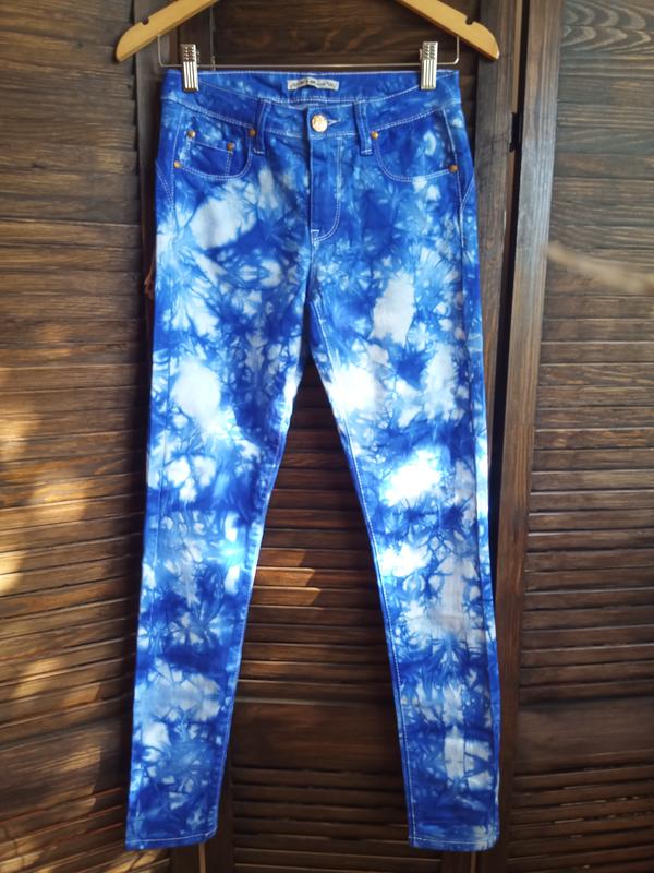 Стрейчеві джинси, дуже яскраві і ефектні, з абстрактним малюнком 🤍💙 Дуже добре тягнуться, денім середньої щільності. Вузенькі, сідають чітко по фігурі. Посадка низька, на стегнах. Комфортні і зручні, абсолютно нові. На жаль, сама не встигла поносити, вони вже замалі на мене. Розмір S, можлива невелика М, орієнтуйтеся на заміри. Заміри: ↔️ Напівобхват талії - 34 см ↔️ Напівобхват стегон - 43 см ↕️ Довжина по зовнішньому шву - 98 см ↕️ Довжина по внутрішньому шву - 77 см ↕️Висота посадки спереду - 21 см ↕️ Висота посадки ззаду - 29 см