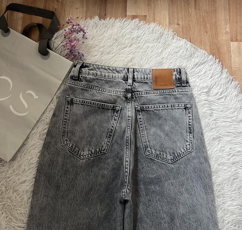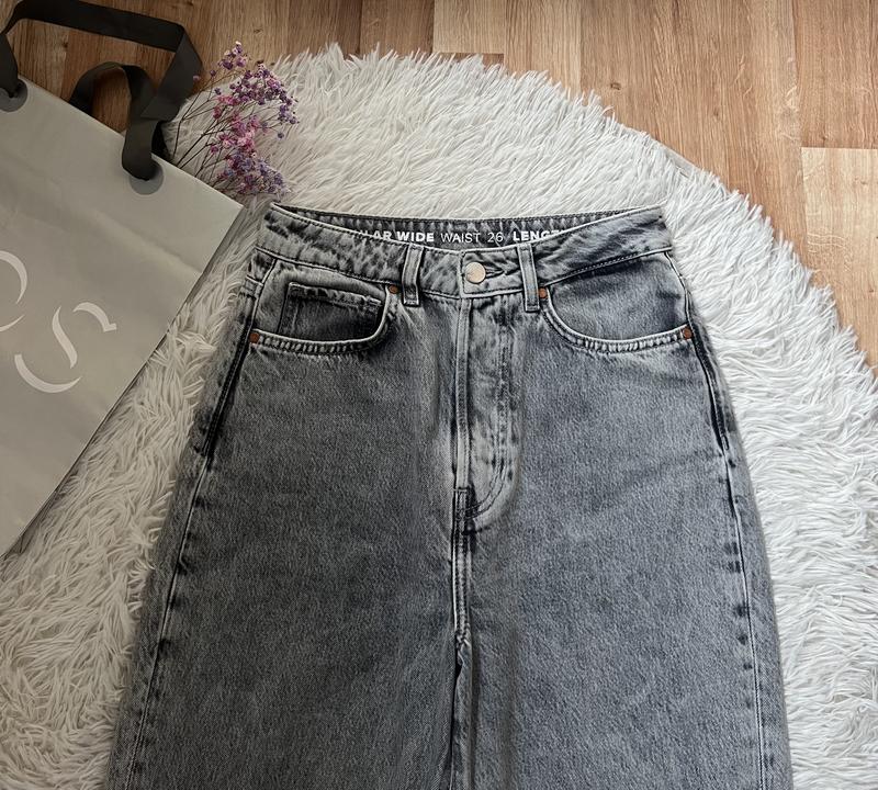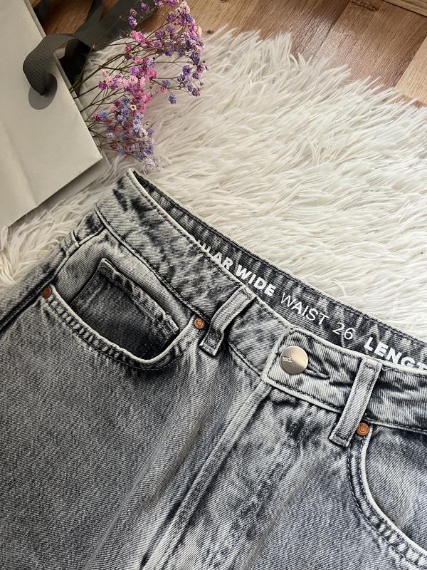 Стильні джинси широкі Висока посадка Необроблений низ Стан ідеальний ЗаміриП.о.т—34-35Висота посадки-30П.о.б-48Довжина-100Ходовий шов-70Низ-24