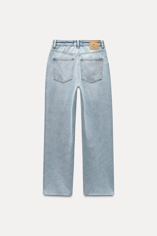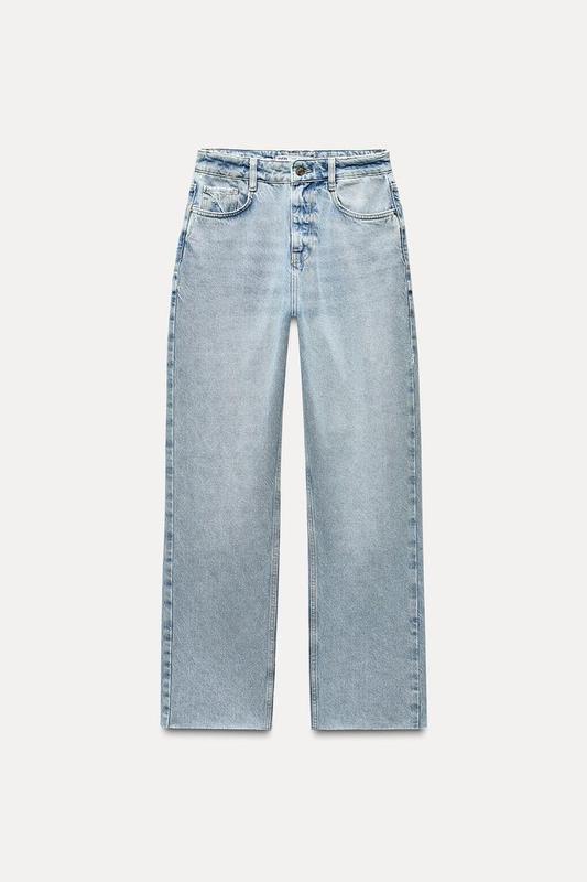 Джинси з вареним ефектом, високою посадкою та п'ятьма кишенями. Прямий крій із непідшитим низом. Застібаються на блискавку та металевий ґудзик спереду.