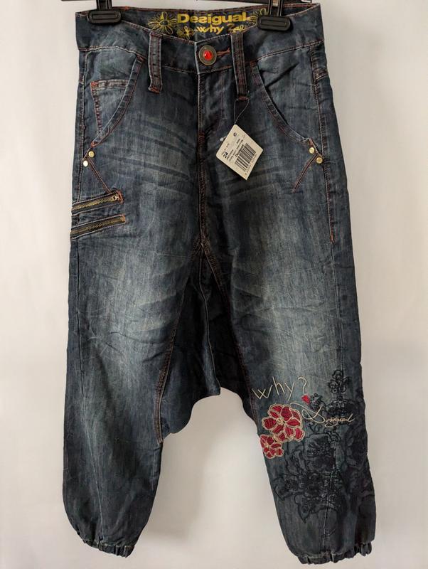 Жіночі джинси із заниженою матнею Desigual. Іспанія. 100% бавовна. 24 ПОПояс 37 ПОБ 47 Довжина 95 Посадка перед 56 Посадка зад 62 Ширина штанини низ 21