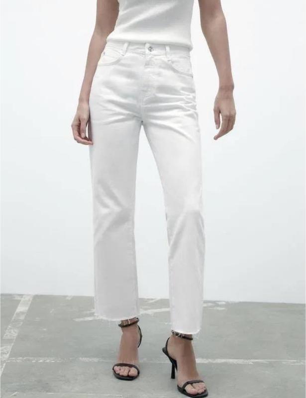 Стильні джинси від бренду Zara — вкорочена модель з модними підрізаними краями. Ідеальні для повсякденних образів, легко комбінуються з будь-яким верхом. Одягали лише один раз, стан як новий. Заміри надам за запитом.