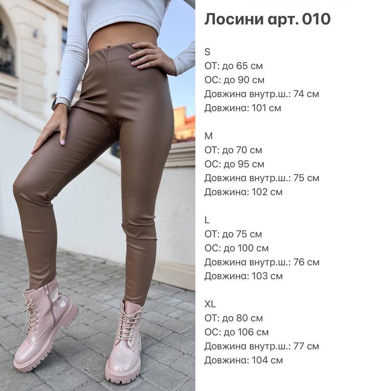 Шкіряні лосини, фото реал✅⠀▫️Розміри: S, M, L, XL( заміри на фото)▫️Кольори: чорний, мокко▫️Тканина: еко шкіра на трикотажі⠀Модель 010