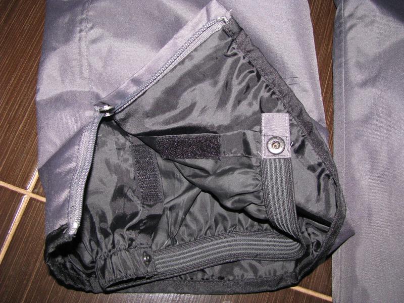 Внизу штанин - снегозащитные манжеты с резиновым усилением, расстегиваются - на липучке и кнопке
