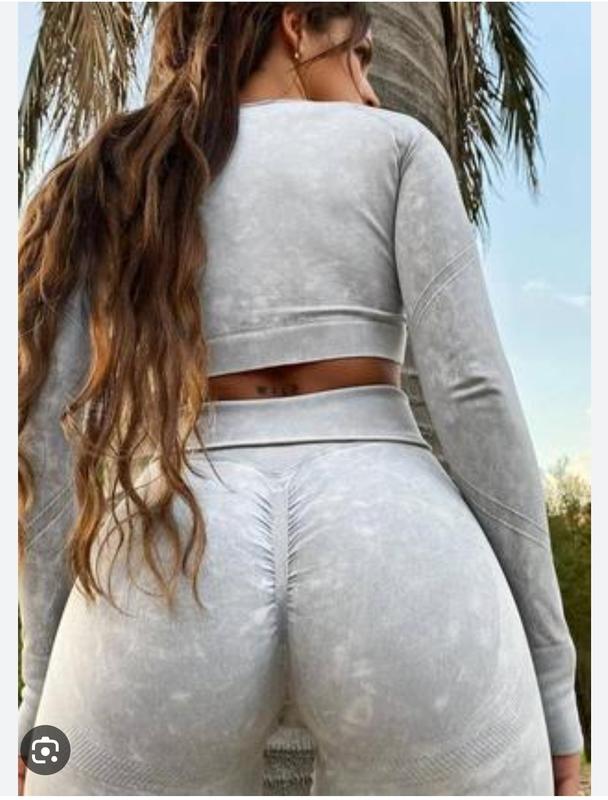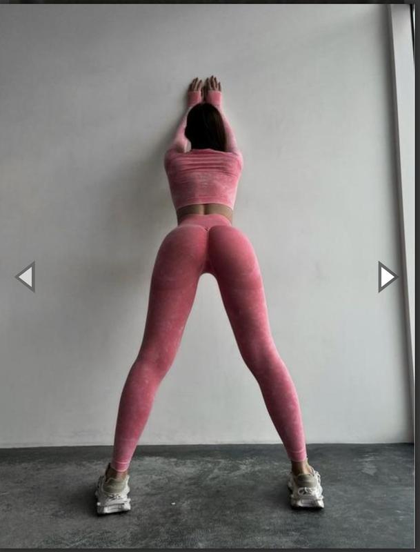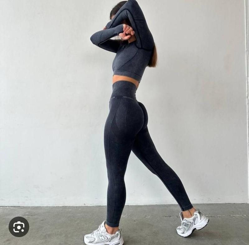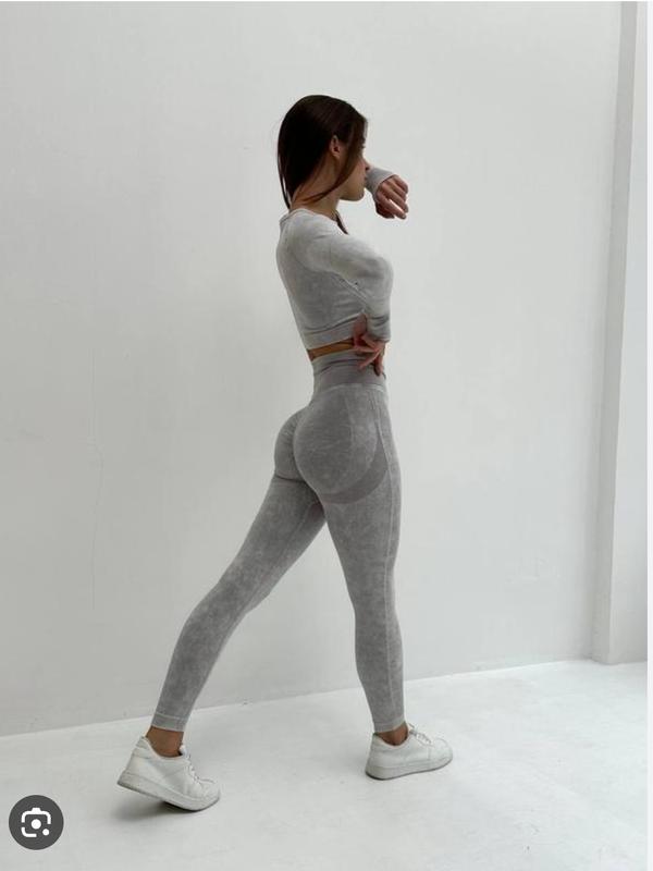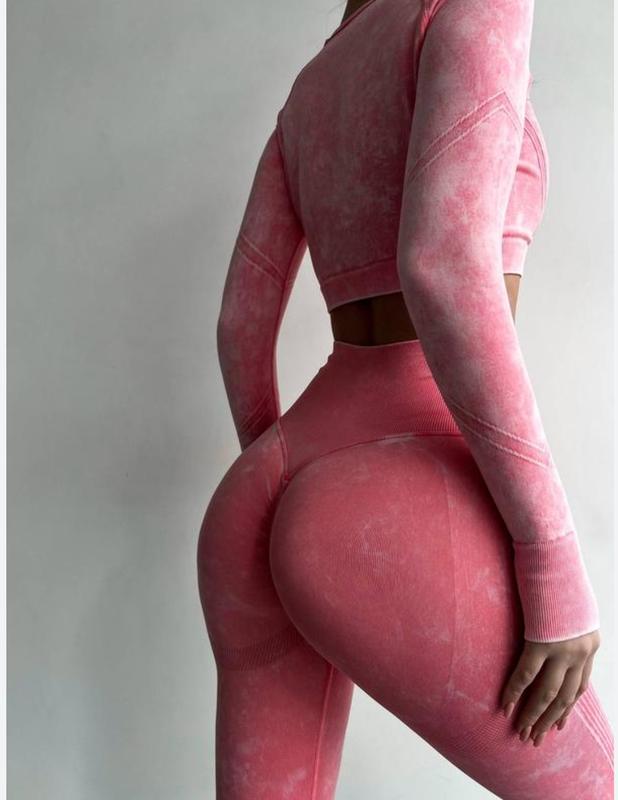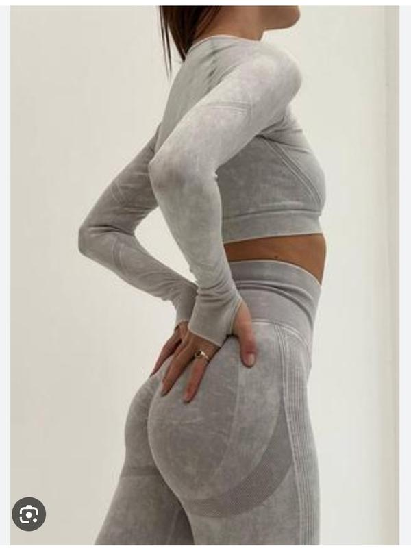 Безшовний пушап фітнес костюм рубчик, комплект для спорту топмз довгими рукавами та лосіни пуш ап, кроп топ и лосины
