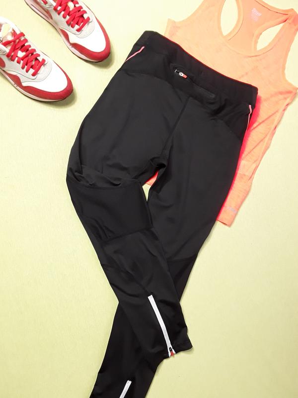 Спортивні жіночі bershka h&m sport Розмір L Пояс 42/58 см Стегна 46/60 см Посадка 31 см Довжина 95 см Внизу штанин змійки Ззаду кишеня на змійці Вставки з сітки ззаду і під колінами Світловідбиваючі елементи