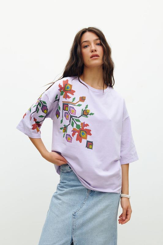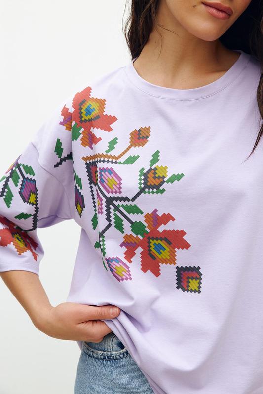 Ця жіноча біла футболка з котону з квітковим принтом -- ідеальний вибір для