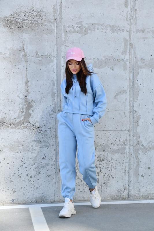 Голубий блакитний теплий спортивний прогулянковий костюм на флісі