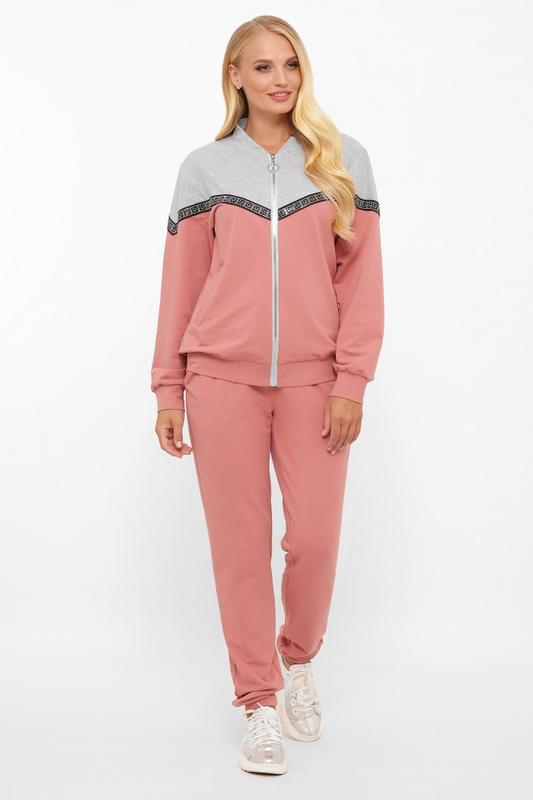 Костюм из плотного тонкого трикотажного полотна (двунитка), в стиле "спорт-шик", состоящий из бомбера и брюк. Бомбер украшен тесьмой с камнями "Swarovski". Цвет:синий, серый, пудра, оливка,мята Размер: 52, 54, 56, 58 Состав:полиэстер 35% вискоза 30% хлопок 35%