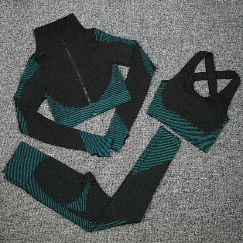 Трендовий спортивний костюм(форма) для фітнесу, 3 в 1, лосини+топ+рашгард на блискавці