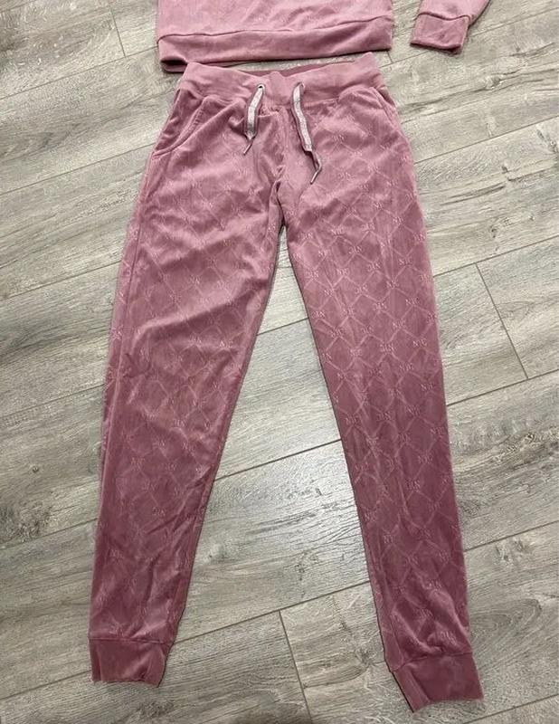 Німецька якість! Гарний велюровий костюм від німецького TM Lidl. Пояс штанів - широка комфортна гумка, є функціональна шовкова стрічка для регулювання об'єму, штанини на манжетах (джоггери). Дуже м'який і зручний. Виглядає розкішно і дорого.