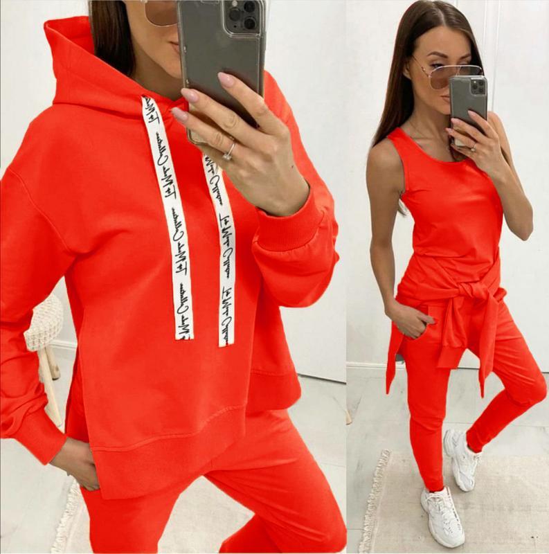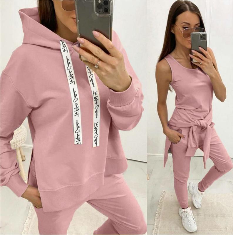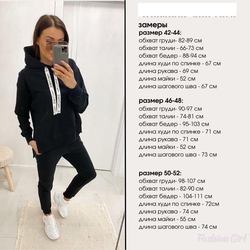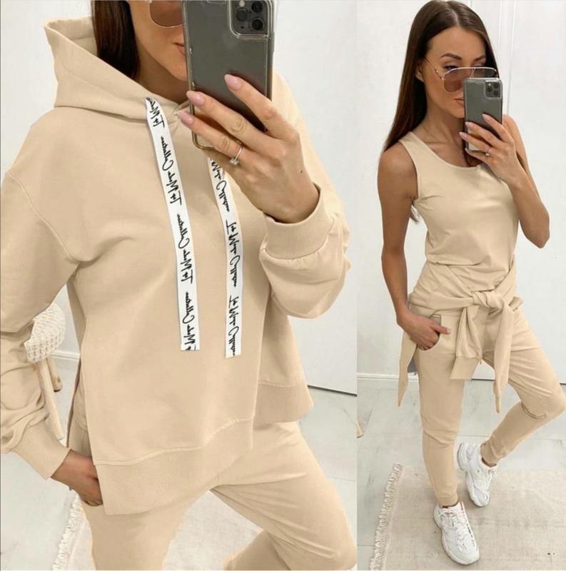 спортивний трикотажний костюм трійка – абсолютно незамінний комплект для щоденних потреб сучасної дівчини. Адже цей костюм підходить для занять спортом, прогулянок, активного відпочинку, відряджень і просто на кожен день. Модель може легко виступати як самостійний елемент образу, так і його складової. Комплект вдало комбінується з модними косухами, тренчами і кардиганами. Особливості трикотажного спортивного костюма: Жіночий комплект одягу у спортивному стилі, складається з трьох елементів: Кофта-худі з капюшоном вільного асиметричного крою з розрізами з боків. Плече вироби спущено, довгі рукави з манжетами. Майка-безрукавка з круглим вирізом горловини. Спортивні штани з кишенями. Пояс на резинці, посадка висока. Штанини вільні, внизу на манжетах. Модель виготовлена з трикотажного полотна двунітка. Матеріал міцний, зносостійкий і повітропроникний. Навіть при активній експлуатації двунітка довго зберігає соковитість відтінку і не деформується. Для прання рекомендований температурний режим не вище 30 градусів. Щоб прикрасити свій новий весняний гардероб трикотажної новинкою, сміливо тисніть на кнопку «Купити». Спортивний костюм трійка – найкращий подарунок для себе і близьких! Характеристики Стиль:Спортивний Сезон:Осінь/весна Довжина батника по спинці:67-72 см Довжина рукава від горловини:69-74 см Довжина майки від плеча:52-55 см Довжина крокового шва штанів: 70-74 см Довжина бічного шва штанів:98-103 см Матеріал:Двунітка Таблиця розмірів Наявність на складі Колір 42-44 46-48 50-52 Помаранчевий ✓ ✓ ✓ Чорний ✓ ✓ ✓ Білий ✓ ✓ ✓ Фрезовий ✓ ✓ ✓ Бежевий ✓ ✓ ✓ ✓ — в наявності (кількість обмежена). ✗ — немає в наявності (знято з виробництва).