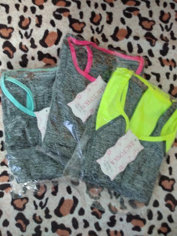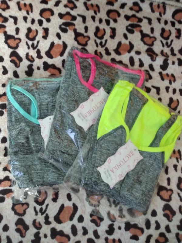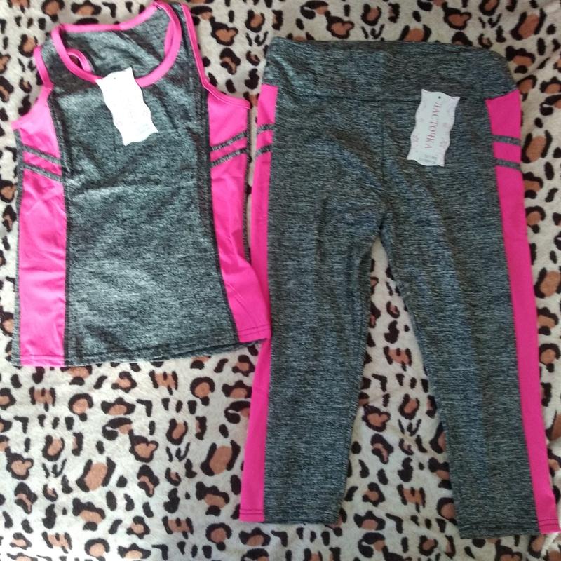 Костюми спортивні: майка + бриджі. Є два розміри в різних кольорах.