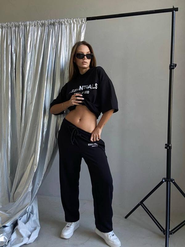 Костюм, фото реал✅ ⠀ ✅Відеоогляд скину у Вайбеp ▫️тканина: двохнитка люкс ▫️кольори: чорний, бежевий ▫️розміри: 42-46 oversized ⠀ Стильний костюм оверсайз. Якісна накатка. ⠀ Заміри:✅ ОГ 112 см довжина футболки 68 см ОТ 62-75 см ОС 110 см довжина штанів 101 см ⠀ Модель 2310 ‼️Безопасної оплати немає ,є накладний платіж з передплатою‼️ Відправка 2-4дні Є обмін розмір