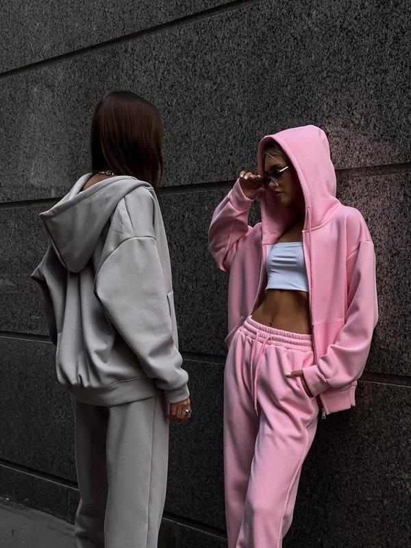 Костюм ▪️Артикул: R4957/517 ▪️Розмiр: 42-46, 48-52 ▪️Тканина: тринитка на флісі ▪️Колір: ▫️блакитний, сірий, рожевий Ціна: 1080 грн