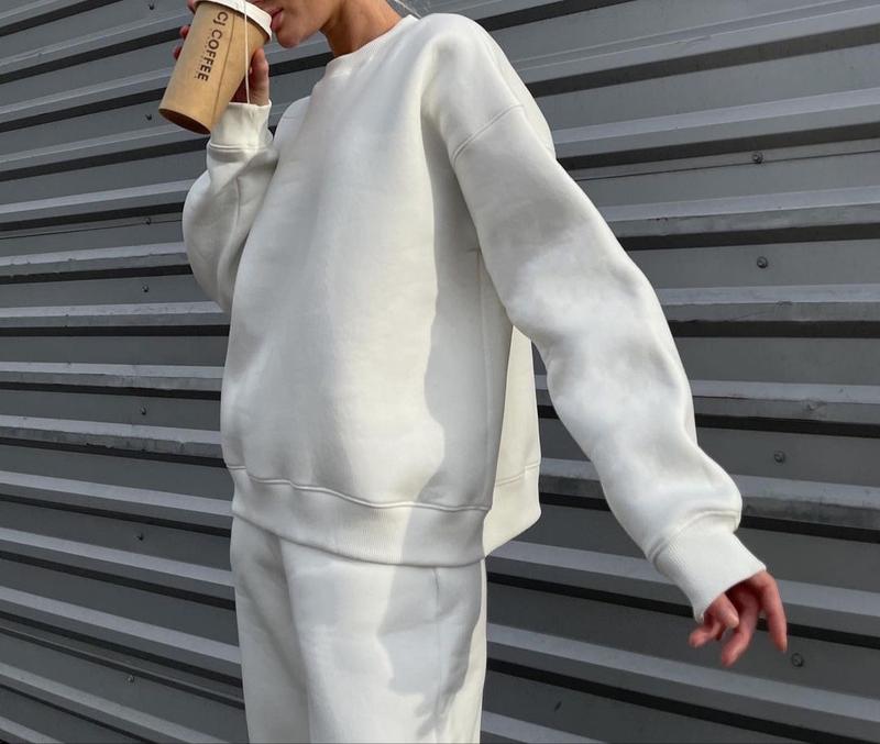 утеплений костюм з базовим світшотом у молочному кольоріШтани розмір хс, світшот у розмірі М (виглядає як оверсайз)Стан: абсолютно новий. Не одягався жодного разу. Є бірки. Заміри: штани (от 58-65 см) (об 86-90 см). Довжина штанів 96 см. Світшот - розмір М (трохи йде як оверсайз) , рукав 76 см з плечем; довжина 62 см; від пахви до пахви 62 см. Ціна: 500 грн за весь костюм. тканина футер пеньє трьохнитка з начосом -70%. хлопку та 30% поліестеру, тепла, зручна, ідеальна на осінь/зиму та ранню весну