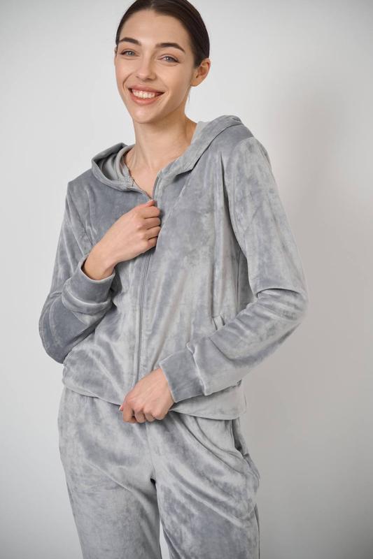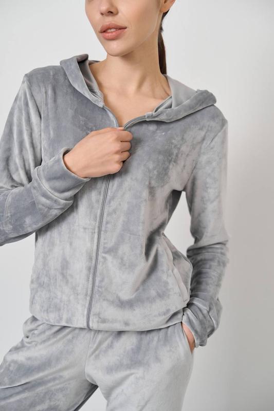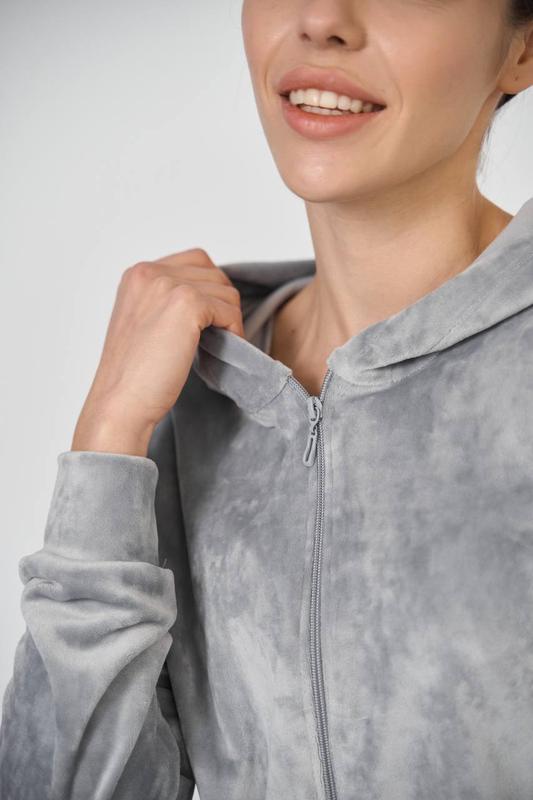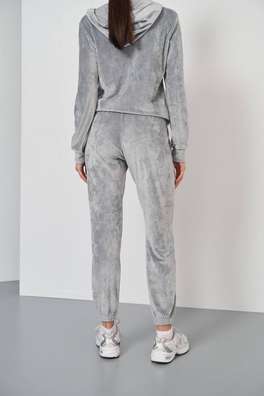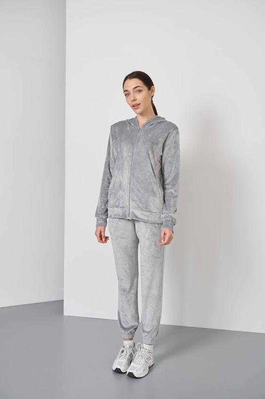 Верх костюму на замку та капюшоном, з манжетами знизу кофти та на рукавах. Штани-джоггери на резинці знизу та широким поясом, який не буде перекручуватися і перетискати 👌
