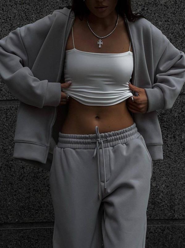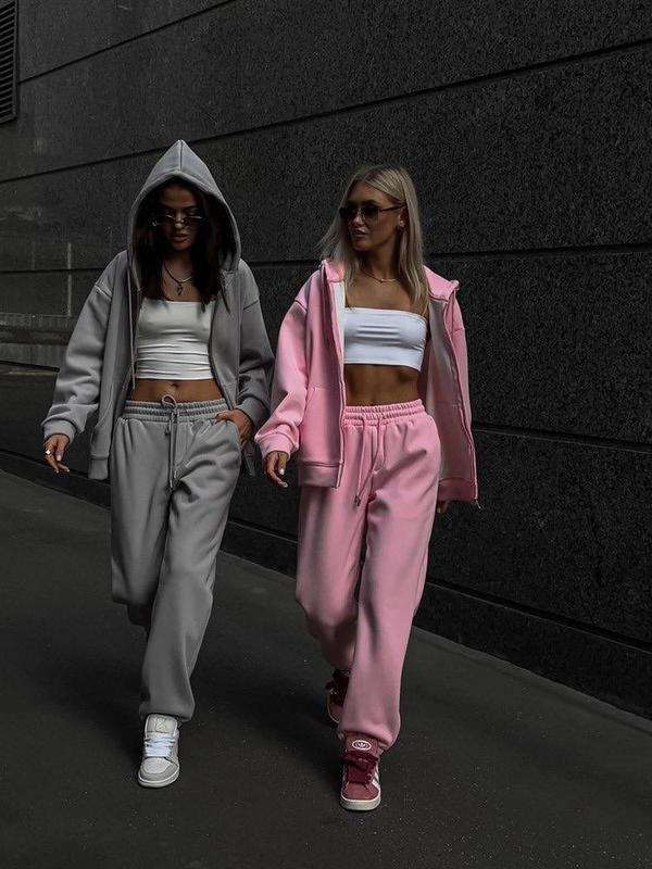 Худі oversize на молнії та вільні штани, виглядають дуже стильно😉