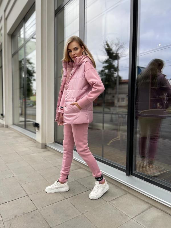 Спортивний костюм з жилеткою Тканина: тринитка на флісі. Плащівка (синтепон 150) Розмір: 42-44, 44-46, 46-48, 48-50 Колір: чорний, моко, фрез, морська хвиля Ціна:1499 грн