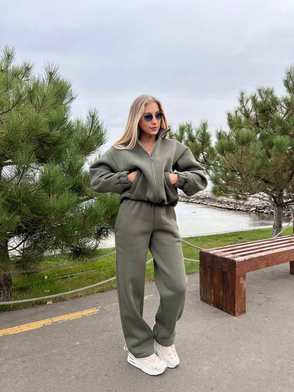 Костюм▪️Артикул: G1433/200▪️Розмiр: 42-44, 46-48▪️Тканина: тринитка на флісі▪️Колір: ▫️графіт, малина, ▫️світлий беж, хакі