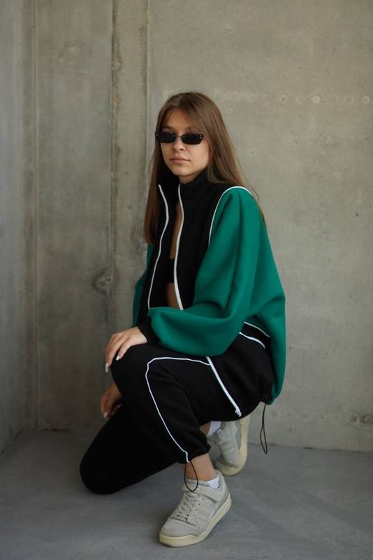 🔥 Яскравий комбінований костюм, з акцентними вставками 🌪️ Бомбер оверсайз на блискавці, в поєднанні з комфортними джогерами, низ штанів регулюється резинкою з фіксаторами