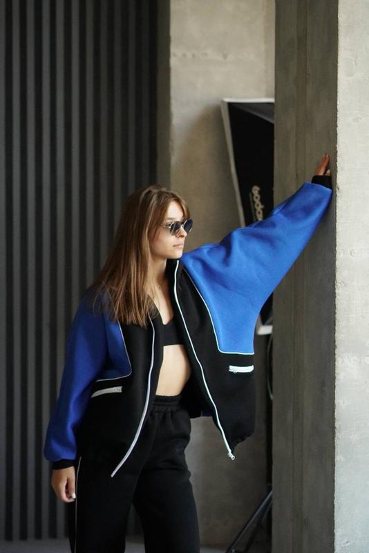 🔥 Яскравий комбінований костюм, з акцентними вставками 🌪️ Бомбер оверсайз на блискавці, в поєднанні з комфортними джогерами, низ штанів регулюється резинкою з фіксаторами ▪️розмір: one size ▪️колір: чорно-зелений, чорно-синій, чорно-рожевий ▪️тканина: турецька тринитка з м‘яким флісом зсередини, (не кошлатиться), манжети з кашкорсе ▪️модель: 161 ▪️ціна: 1450 грн