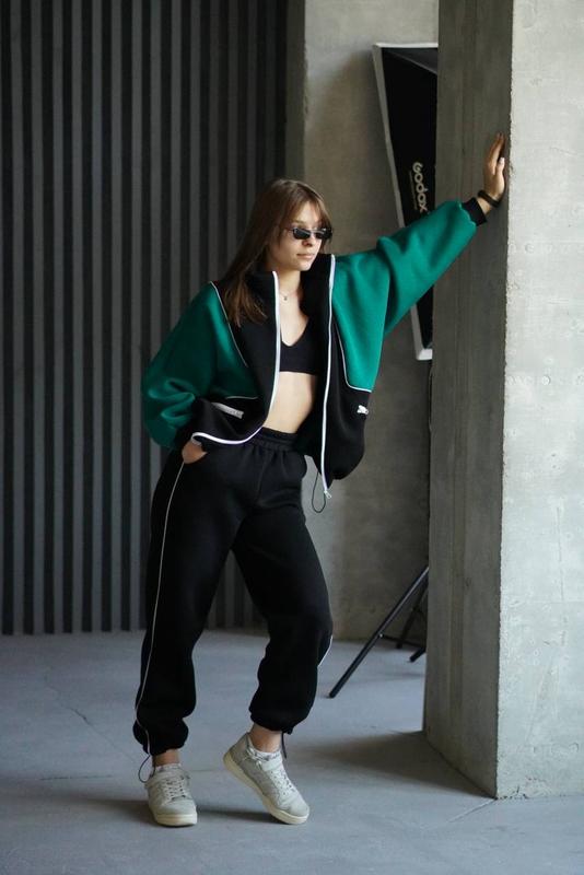 🔥 Яскравий комбінований костюм, з акцентними вставками 🌪️ Бомбер оверсайз на блискавці, в поєднанні з комфортними джогерами, низ штанів регулюється резинкою з фіксаторами