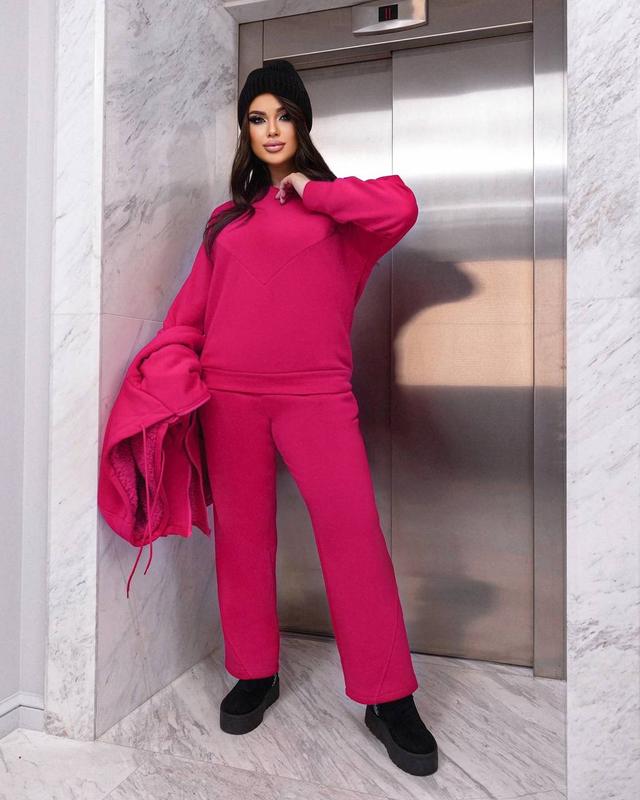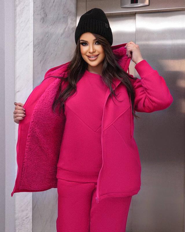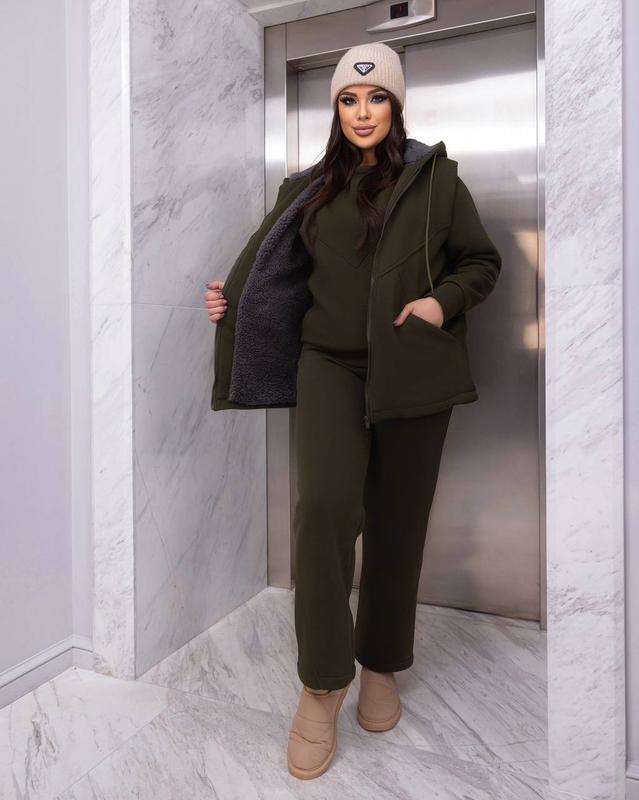 ❄️❄️❄️ТЕПЛЮЩИЙ КОСТЮМ-ТРІЙКА з турецької тканини ( якість Пінʼє) + щільна овчина на жилетці , цікавий крій , який поєднується на всіх трьох деталях ❄️❄️❄️