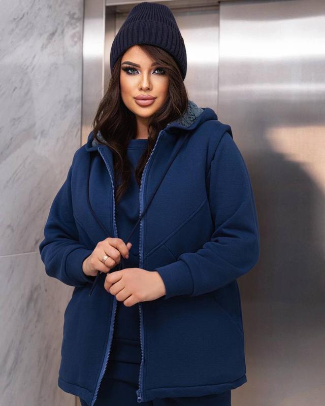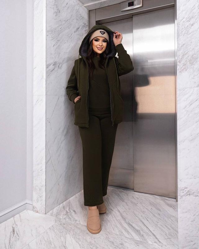 ❄️❄️❄️ТЕПЛЮЩИЙ КОСТЮМ-ТРІЙКА з турецької тканини ( якість Пінʼє) + щільна овчина на жилетці , цікавий крій , який поєднується на всіх трьох деталях ❄️❄️❄️