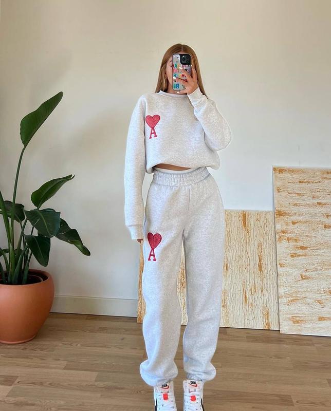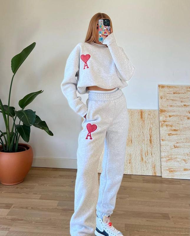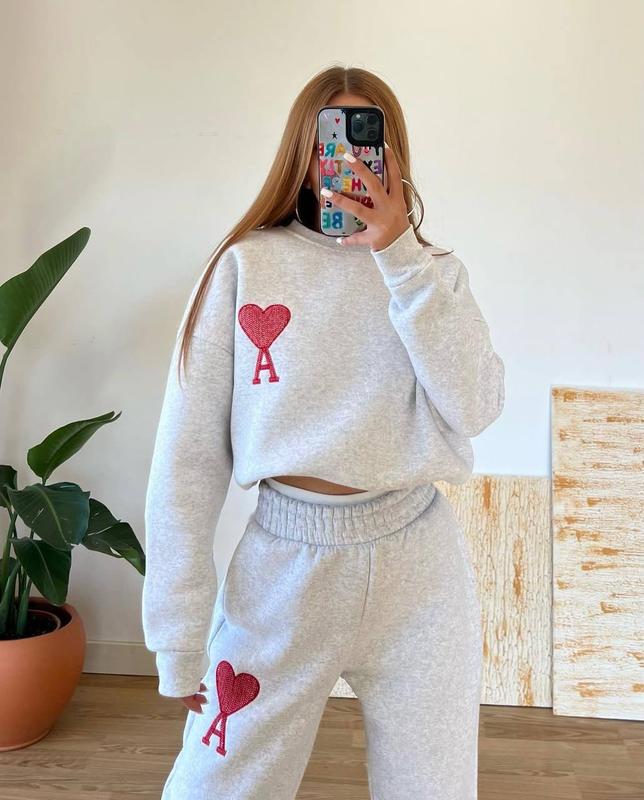 Стильний спортивний костюм, меланжевий трикотажний костюм на флісі, толстовка, джогери мам