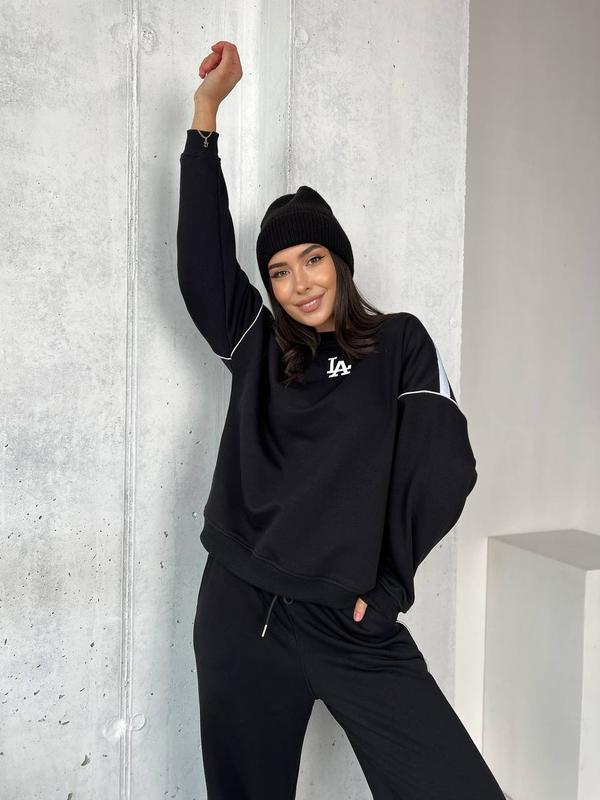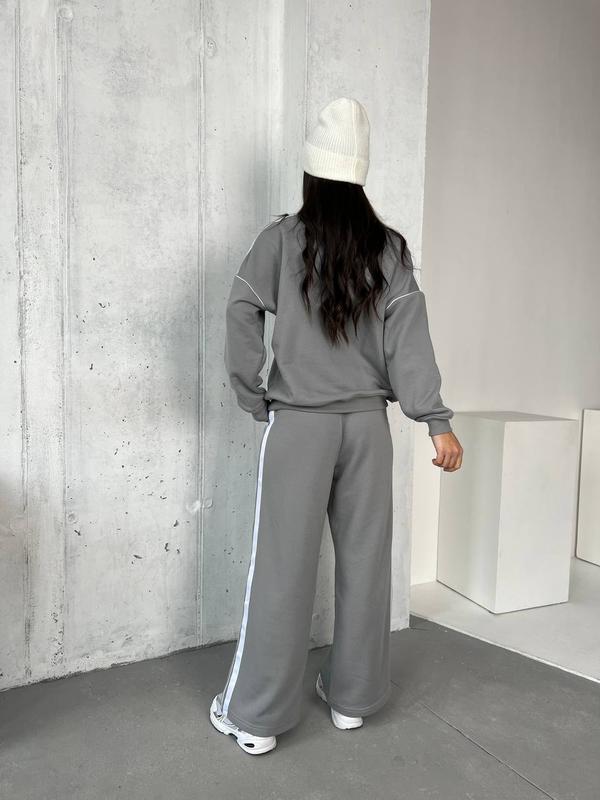 Стильний костюм вільного крою з трендовим оздобленням ,підійде на любий випадок . На зустріч з друзями , у похід до кінотеатру, на вечірню прогулянку.