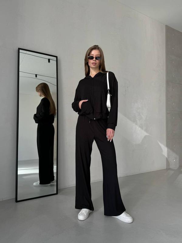 Бомбезний костюмчик на весну. Якість супер! Кофта з капюшоном та робочими кишеньками. Штани вільного крою на резинці та двома робочими кишенями.