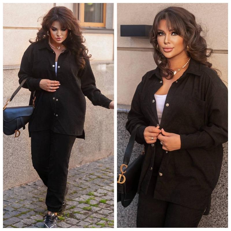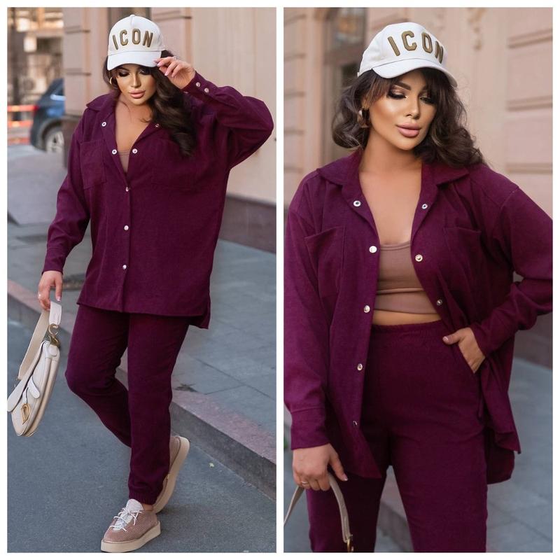 Прогулянковий жіночий костюм сорочка штани великого розміру з мікровельвету.