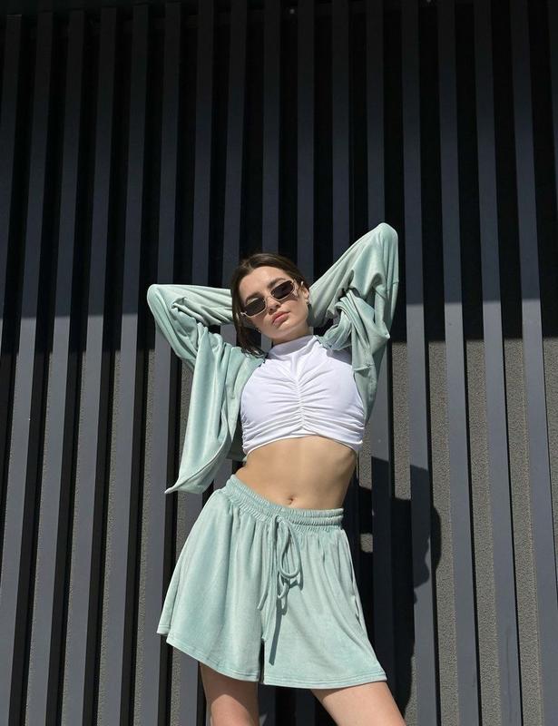 ▪️Артикул: G1463/590▪️Розмiр: 42-46▪️Тканина: велюр▪️Колір: ▫️хакі, барбі ▫️блакитний, електрик ▫️олива, чорний, пудра