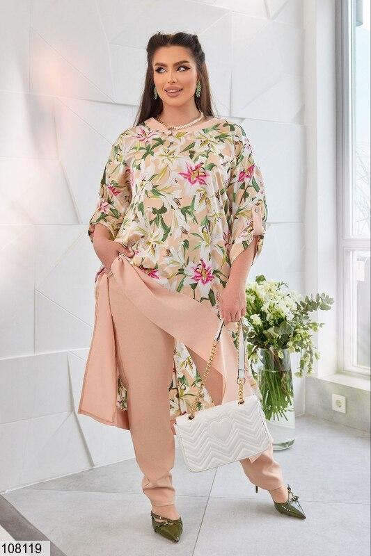 штани — костюмка діагональ, туніка — шовк армані та вставка софту,