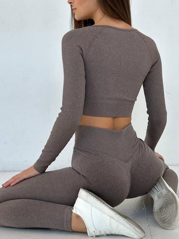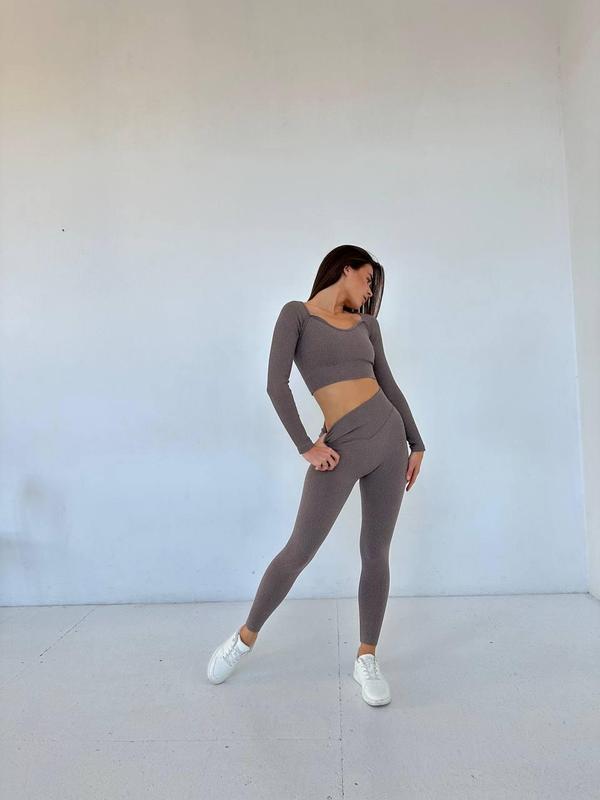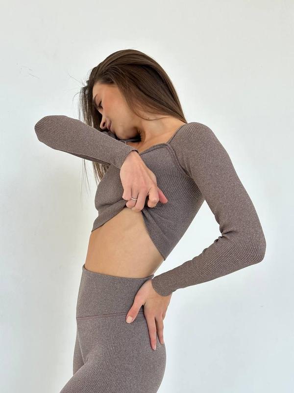 Жіночий спортивний костюм безшовний для йоги і фітнесу коричневий, одяг