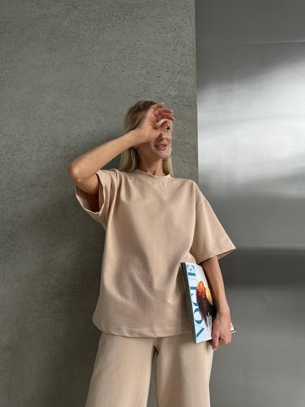 Костюм складається з вільною по крою футболкою та брюк