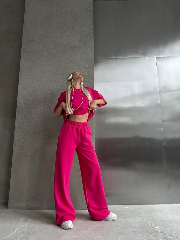 Костюм складається з вільною по крою футболкою та брюк