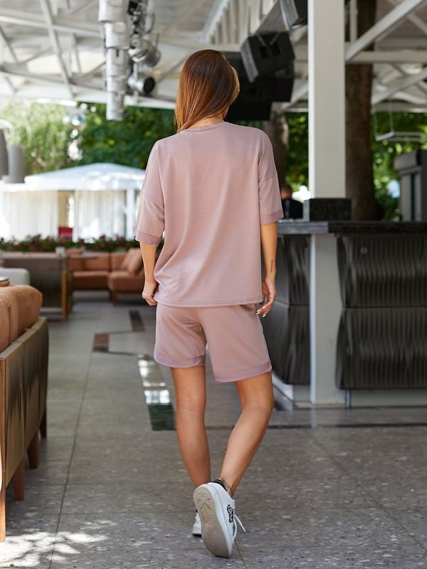 Стильний костюм складається з вільної футболки oversize і шорт: