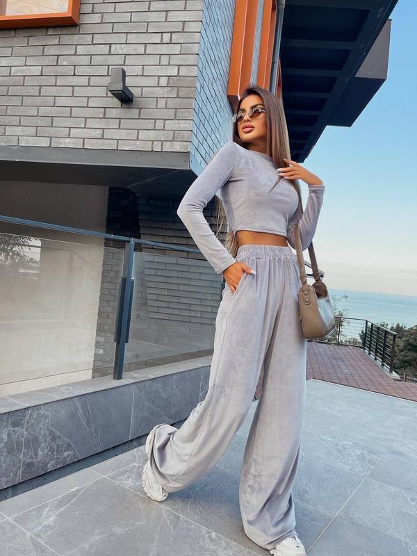 М'який і приємний до тіла костюм з велюру точно стане вашим улюбленцем, завдяки своїй універсальності.
