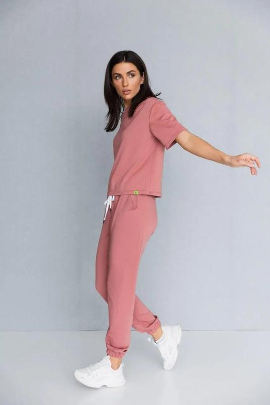 Ідеальний жіночий літній костюм зі штанами та футболкою з коротким рукавом.