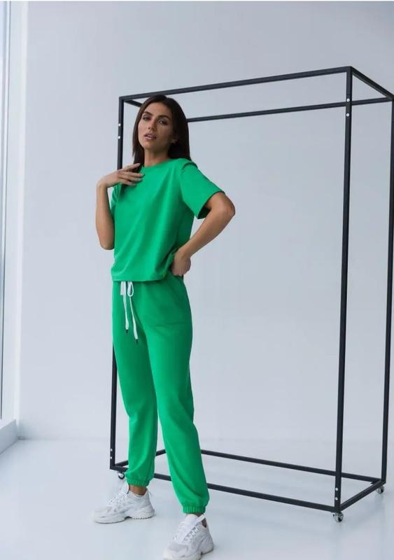 Стильний жіночий літній костюм зі штанами та футболкою з коротким рукавом