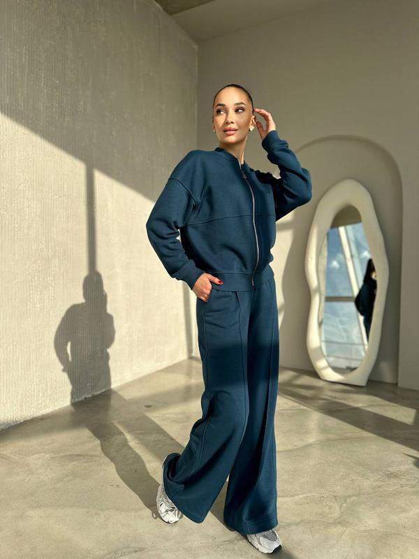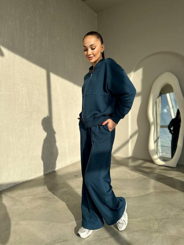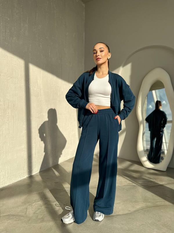 Наша новинка це поєднання стилю та комфорту!!! Дуже якісний пошив!! Гарна посадка!!! Бомбер та штани палаццо зроблені з натуральної тканини бавовни Виробник Туреччина, тринитка петля склад 95/5. Якість Преміум 💯