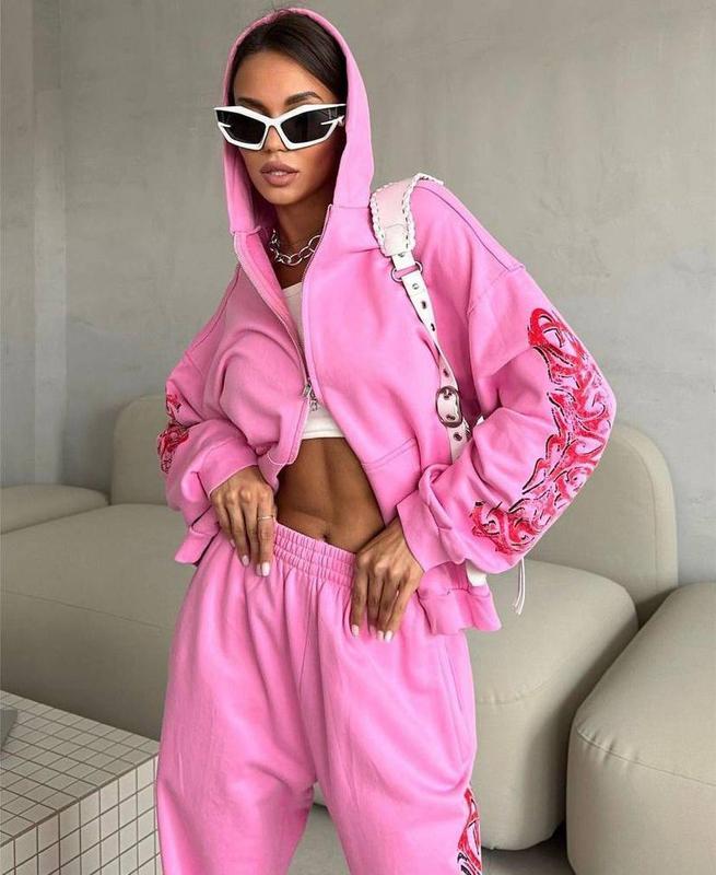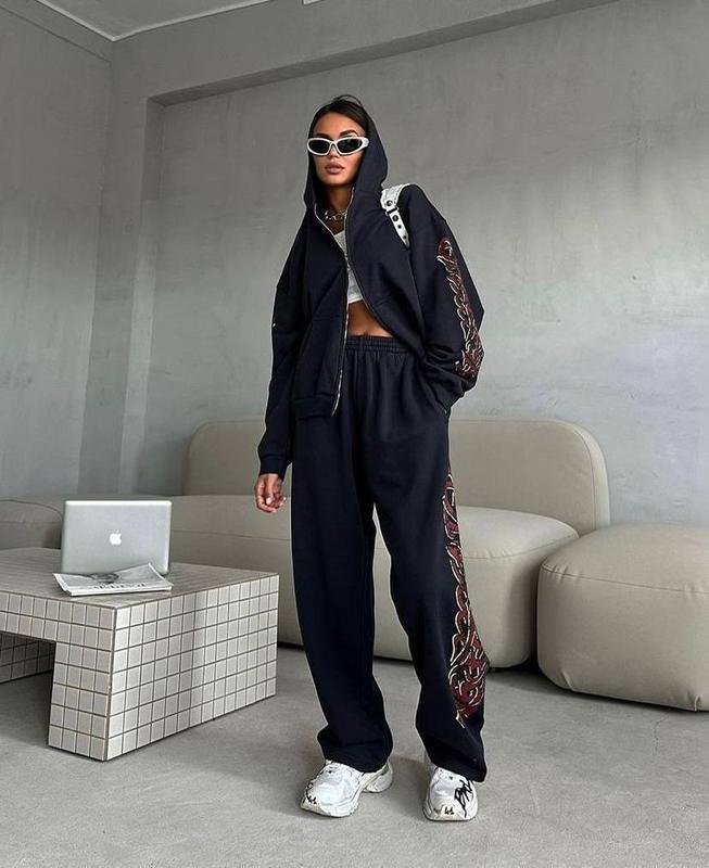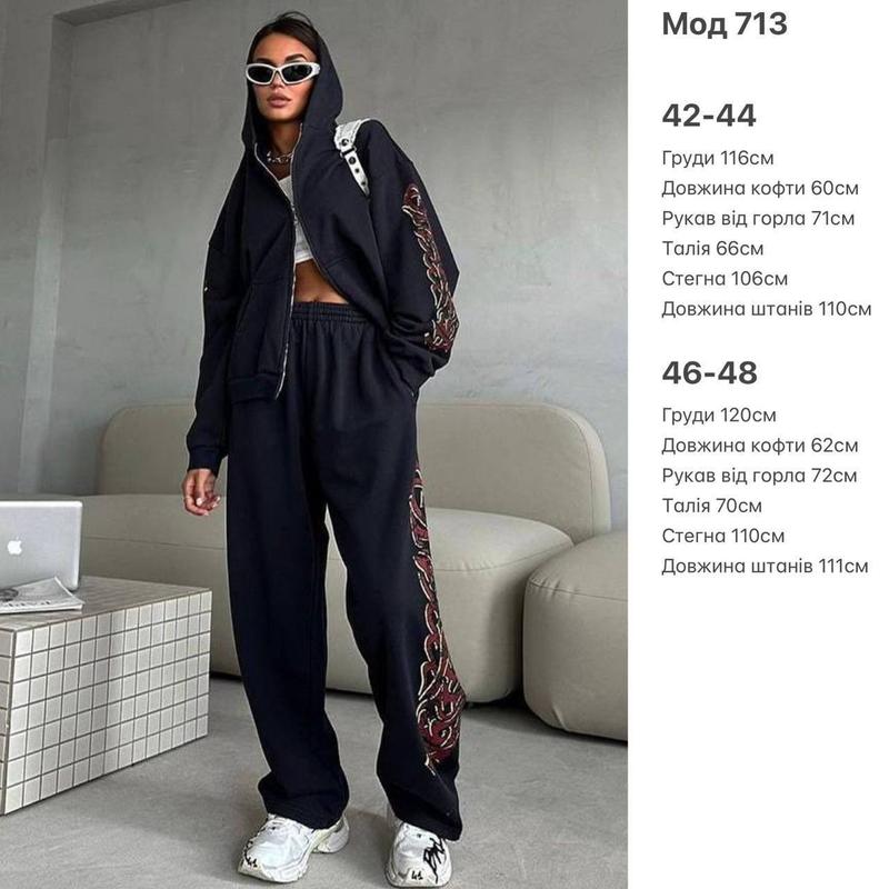 Костюм складається з цільнокрійних широких штанів та кофти на блискавці , неймовірно гарно сідає по фігурі . Вироблено з коханням  до кожного з вас 😍