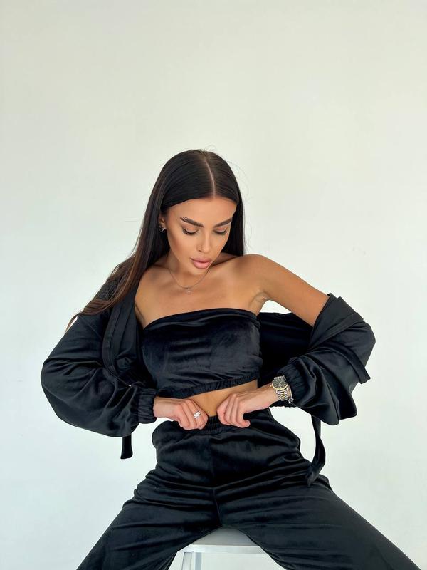 Наша новинка - костюм трійка який складається зі зручного худі, стильних джогерів і топу. Костюм створений з високоякісної, плотної тканини, яка забезпечує комфорт і зручність. Приємний, м’який та затишний.