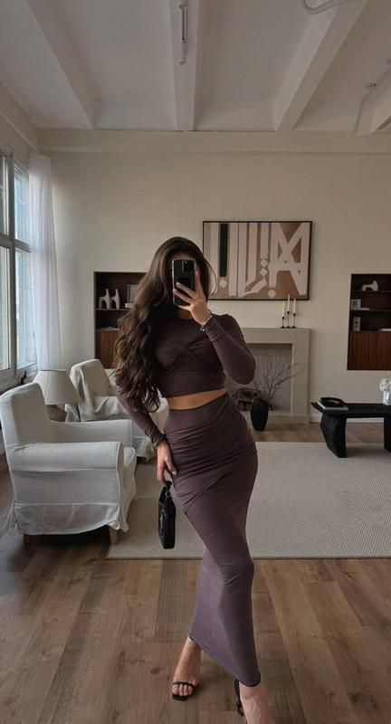 - Особливості: облягаючий комплект, підкреслює фігуру, елегантний та жіночний