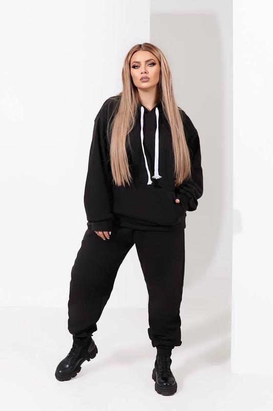 Прогулянковий спортивний костюмСтиль OverSizeМодель 221 💣💣💣💣💣Тканина:тринитка на флісі (приємна до тіла та відмінної якості).Колір сірий,джинс та чорний Розміри: 42-46; 46-50; 50-54; 54-58.Ціна: 680 грн