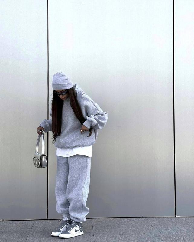 🔜Костюм на флісі✌️ Худі Оверсайз та джогери, на худі присутні кармани у бокових швах 🔥Кольори - сірий - шоколад - графіт - чорний - електрик (синій) ➡️Мод. 1158 ➡️Розміри: 42-46; 48-52 ➡️Тканина: Трьохнитка на флісі Розмір: 42-46 48-52 Довжина кофти: 62см 65см Довжина штанів: 99см 100см Обхват груди: 102см 120см Обхват стегна: 98см 113см 👍#СуперЯкість👍